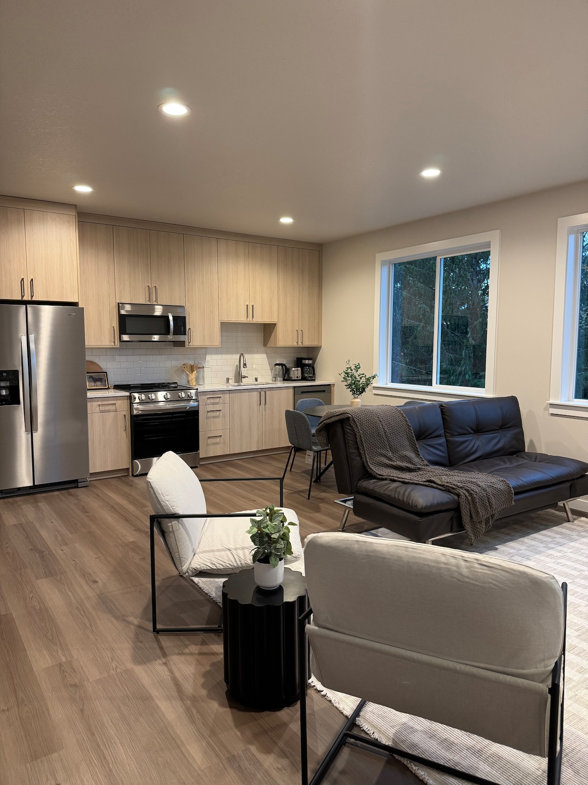 Zamieszkaj w tej spokojnej, nowoczesnej chatce w lesie – to przytulne miejsce na odpoczynek w samym sercu południowo-zachodniego Waszyngtonu. To wyjątkowe miejsce na pobyt, ukryte wśród drzew, oferuje spokojny relaks w stylu tradycyjnego glampingu. Obudź się w otoczeniu przyrody, wypij poranną kawę na patio, obserwując jelenie lub ptaki, i zrelaksuj się pod niebem pełnym gwiazd. Idealne dla osób, które chcą się odłączyć i naładować baterie w spokojnym, naturalnym otoczeniu.