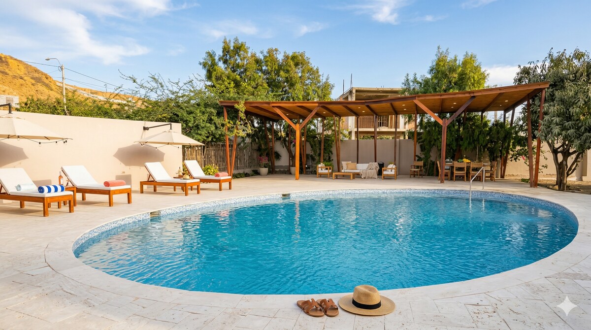 ✨ To więcej niż pobyt – to prawdziwa ucieczka. Niezależnie od tego, czy jesteś rodziną, parą szukającą romantyzmu, małą grupą przyjaciół, czy cyfrowym nomadem szukającym inspiracji nad morzem, to jest Twój kawałek raju. Dom na🌴 plaży w Vichayito, ekskluzywna plaża 15 min od Máncora Widok na🏖️ ocean/zachód słońca 🏊♂️ Mały prywatny basen | ❄️ Klimatyzacja | 💻 Szybkie Wi-Fi Starlink Kuchnia 🍳 zewnętrzna + grill | Prywatny ogród 🛏️ 3 łóżka + sofa | Ciepła woda | Pralka | 📺 DirecTV | Energia słoneczna 🧑🔧 Spersonalizowana usługa