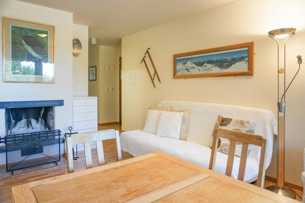 Psy mile widziane.🐶 Bezpłatna ładowarka Tesla. Le P'tit Chalet to wyjątkowe miejsce na pobyt, położone u progu stacji Crans-Montana. W tym niezależnym, starannie urządzonym studio o powierzchni 35 metrów kwadratowych panuje atmosfera wypoczynku i spokoju. Czujesz się tam dobrze. Duży prywatny taras z grillem jest stworzony do relaksu. Oferujemy domowy dżem i małą butelkę lokalnego wina.