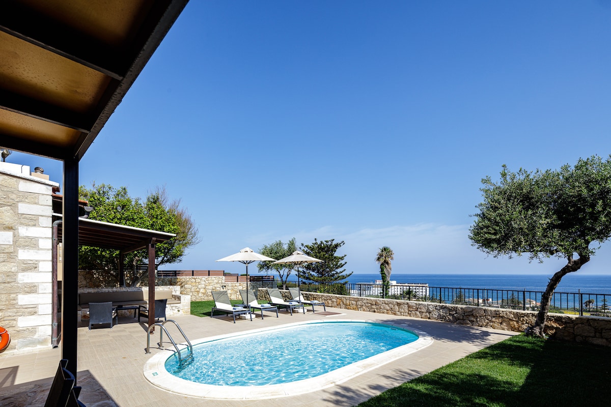 Ta wyjątkowa willa z ziemią oferuje nieograniczony widok na morze i znajduje się zaledwie 250 metrów od plaży w Agios Pavlos, na południowym wybrzeżu Retimno. Posiada prywatny basen (2,5 x 4 metry) i jest wyposażony we wszystkie nowoczesne udogodnienia. Willa jest również dogodnie położona zaledwie 200 metrów od lokalnej tawerny, kawiarni, baru i mini-rynku.