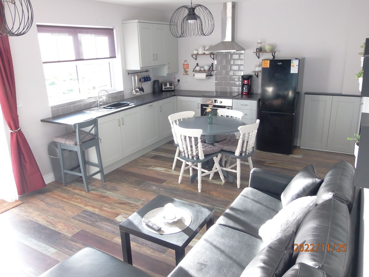 Idealne miejsce na wypoczynek nad wodą przez cały rok dla dwojga. Na brzegu wody, z którego roztacza się widok na morze, góry i panoramiczne widoki. Tylko 5 minut jazdy od dużego miasteczka targowego i 20 minut do Belfastu. Przyjazne dla psów. W pobliżu wiodących pól golfowych. Stylowe. Sklepione sufity, duże okna od podłogi do sufitu, drzwi otwierają się na duży taras skierowany na południe, gdzie można wypić drinka lub zrobić grilla, a także balkon z głównej sypialni. Miejsce do siedzenia na świeżym powietrzu, gdzie można odpocząć lub zjeść posiłek. Piec opalany drewnem w części mieszkalnej.