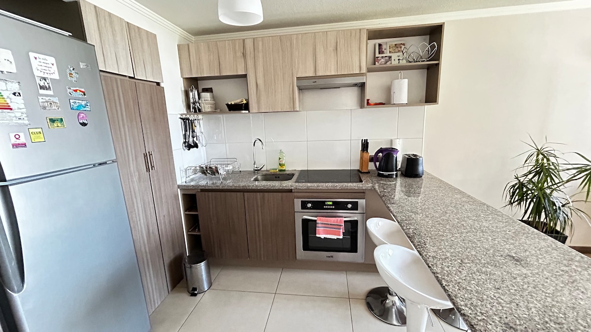 Ucieknij do Coquimbo! Przytulny apartament dla 5 osób przed plażą, z 2 sypialniami (podwójne łóżko, chatka i sofa), w pełni wyposażoną kuchnią, Wi-Fi, pralką/suszarką, całodobowym nadzorem, prywatnym parkingiem i windą (13 piętro). Znajduje się zaledwie 2 przecznice od Mall Vivo, Centro, supermarketów, dworca autobusowego, zatoki, obok lokalnych targów i atrakcji, takich jak pirackie przejażdżki łodzią. Idealne do wypoczynku, cieszenia się morzem i zwiedzania okolicy. Zarezerwuj pobyt i przeżyj atrakcję!