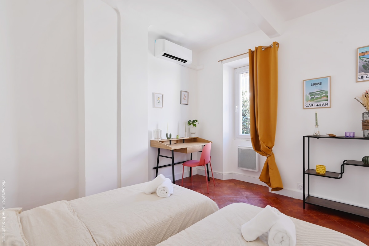 Ten dwupoziomowy dom położony w popularnej dzielnicy Mourillon może pomieścić do czterech osób. Składa się z wyposażonej kuchni, przestronnej łazienki z prysznicem, salonu z rozkładaną sofą oraz antresoli z łóżkiem typu queen size i schowkiem. Całkowicie odnowiony, klimatyzowany i wyposażony dla Twojej wygody, niezależnie od tego, czy jesteś na wakacjach, czy w podróży służbowej. W pobliżu wszystkich udogodnień: targ prowansalski czynny 6 dni w tygodniu, sklepy z wysokiej jakości artykułami spożywczymi, sklepy spożywcze czynne 7 dni w tygodniu, liczne bary i restauracje.