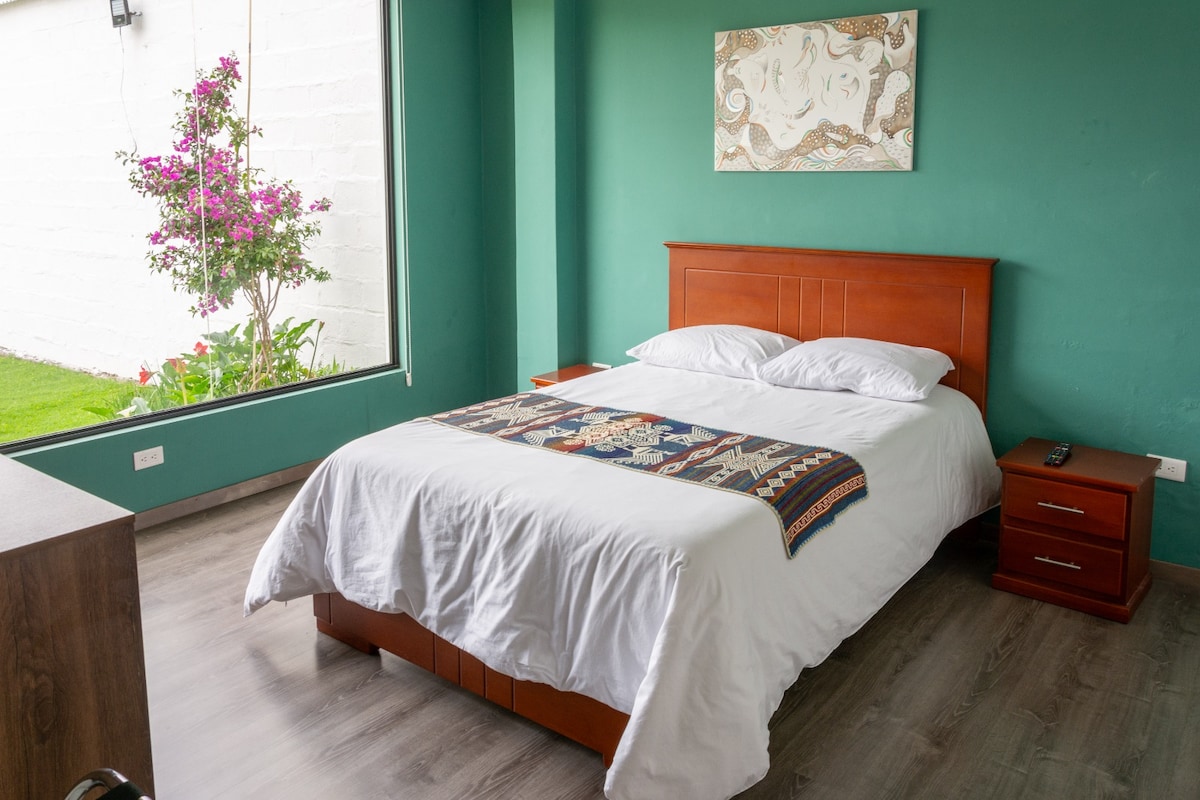 Alojamientocon 1 cama + 1 sofa cama, ideal para descansar unos días en Quito hasta emprender viaje hacia tu nuevo destino. A 500 metros de distancia de la estación del metro.