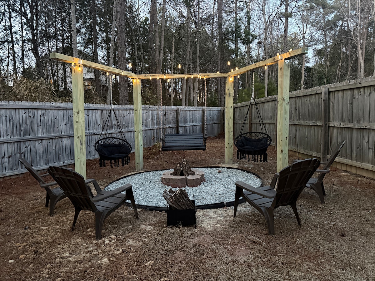Welcome to our charming home with a luxury hot tub! This lovingly crafted house is filled with delightful perks to enhance your stay. Equipped with all the essentials for your comfort and relaxation, including a cozy fire pit and a luxurious hot tub, this place is designed for you to unwind and have a great time. With three TVs and four comfortable bedrooms, you'll find everything you need for a pleasant stay. This home is located minutes away from schools, shopping, dining & Fort Liberty