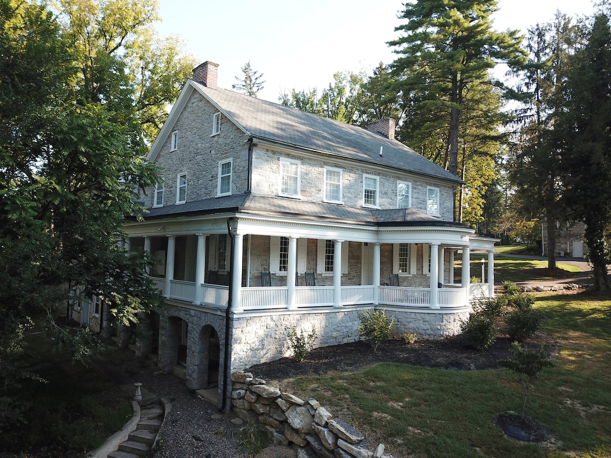Twoja rodzina pokocha ten historyczny pensjonat tylko dla siebie! Ten ponad 230-letni budynek, pierwotnie zbudowany jako tawerna w 1790 roku, oferuje teraz wszystkie nowoczesne udogodnienia, z których korzystają rodziny. Zapewniamy śniadania i inne smakołyki, jednocześnie dając Ci 100% prywatności, abyś poczuł się jak w domu. Rano możesz wykorzystać świeże jajka od naszych kurcząt, aby przygotować rodzinne śniadania w kuchni, która ma wszystko, czego możesz potrzebować. Wieczorem wypij drinka w jacuzzi!