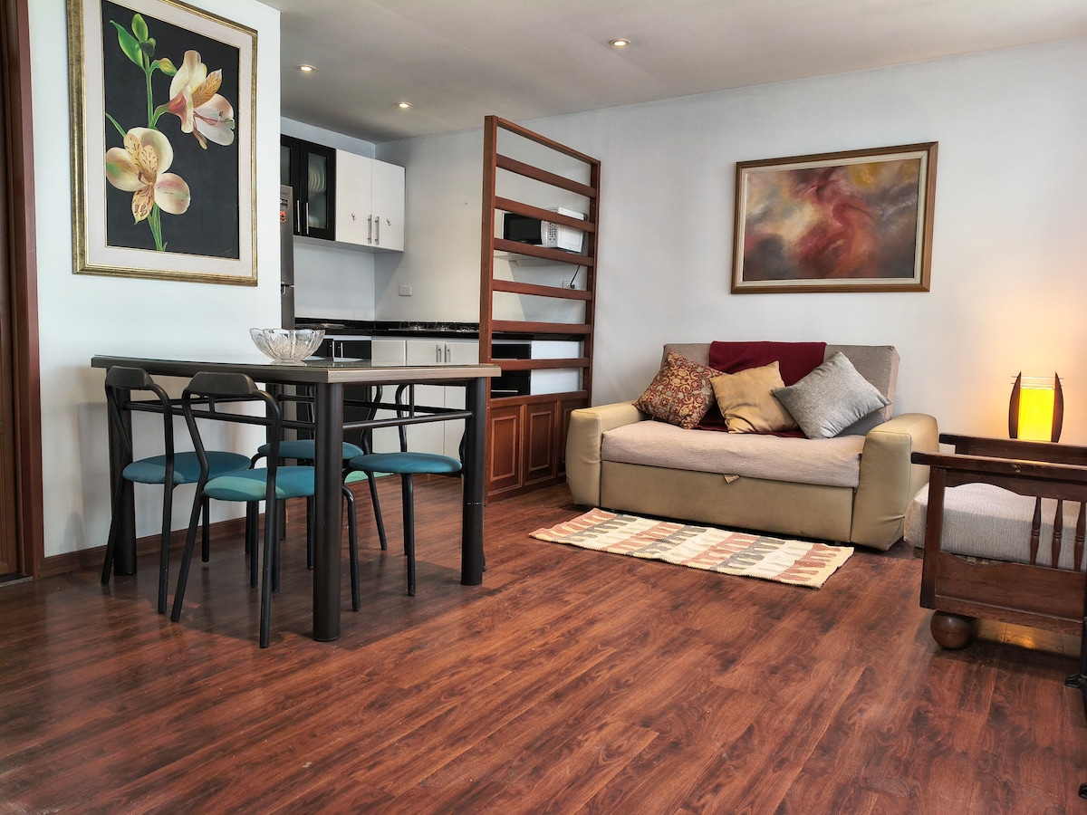 Przytulne mini-apartaestudio (pojedyncze miejsce) wyposażone we wszystko, czego potrzebujesz do komfortowego pobytu. En un barrio residencial, muy tranquilo con zonas verdes y parques. Cerca de centros comerciales y fácil acceso a transporte publico Przytulny mini-apartament (pojedyncza przestrzeń), w pełni wyposażony we wszystko, co może być wymagane do komfortowego pobytu. Znajduje się w dzielnicy mieszkalnej z wieloma parkami, w pobliżu centrum handlowego i łatwym dostępem do transportu publicznego