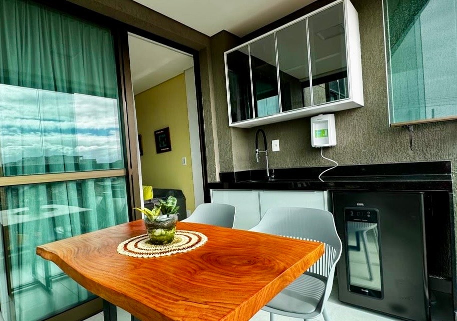 Unidade térrea com jardim privativo e varanda gourmet em frente a piscina. Resort com mais de seis piscinas, hidromassagem, academia, sala de jogos, áreas para pet, wifi utensílios completos de cozinha, ar condicionado, zona de varanda externa com frigobar para desfrutar de churrasco em família, toldo externo para proteção da varanda, cama e sofá cama. coworking, salas de reuniões na zona comum, bicicletario, lavanderia, mercadinho, quadra poliesportiva, parquinho para as crianças. Novinho!