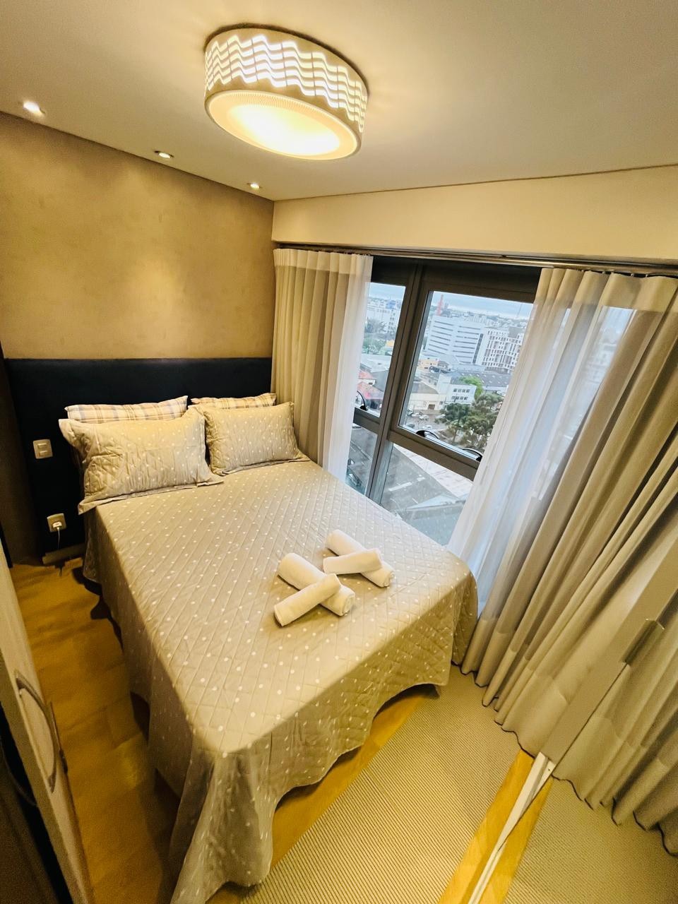 Nowoczesne mieszkanie w centrum. Apartament posiada 1 apartament (podwójne łóżko), klimatyzację, Wi-Fi, salon z rozkładaną sofą połączony z kuchnią i telewizorem. Kompatybilne z 4 osobami. Uprzywilejowana lokalizacja w pobliżu ważnych punktów miasta, SZPITALA, UTFPR, FAE, SKLEPÓW, SANTA CASA, ARENA DA BAIXADA, TEATRU GUAIRA, RYNKU MIEJSKIEGO W budynku znajduje się sala gier, przestrzeń coworkingowa, siłownia, taras na dachu i inne przestrzenie rekreacyjne. Region w pobliżu głównych atrakcji miasta