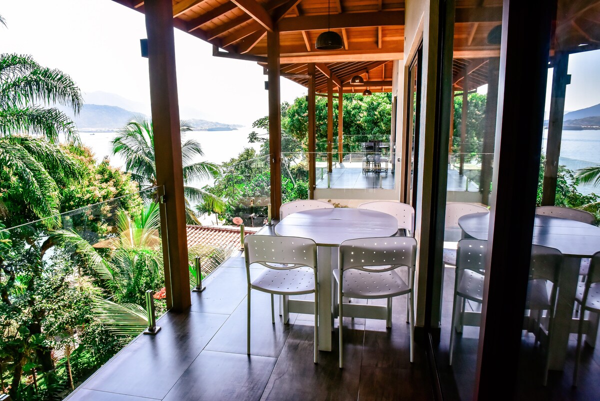 Bungalow dwupoziomowy, niesamowity widok na morze, Ilhabela