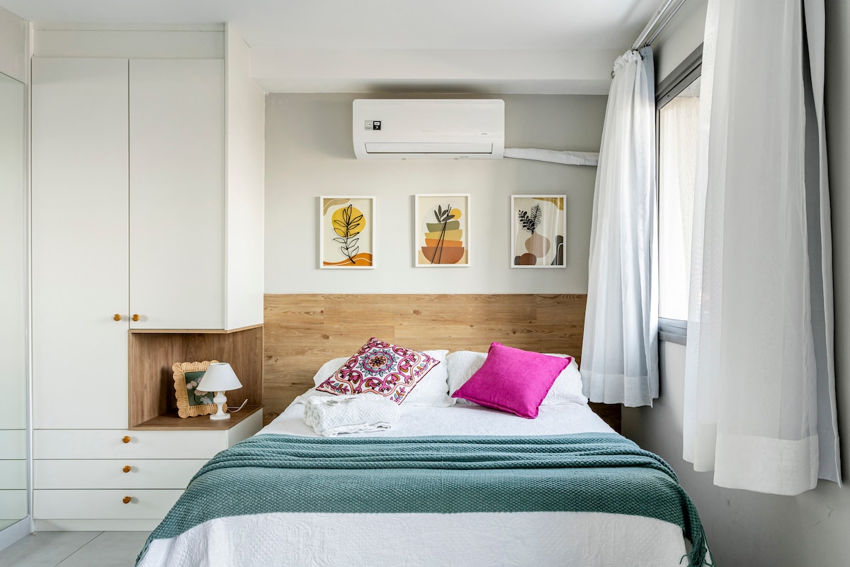 22 m² studio zaprojektowane z myślą o komforcie, praktyczności i strategicznej lokalizacji w São Paulo. Nowoczesny i przytulny wystrój, z łóżkiem hotelowym, klimatyzacją, szybkim Wi-Fi i telewizorem Smart TV. Kuchnia wyposażona w lodówkę, kuchenkę i ekspres do kawy. Idealny stół roboczy do biura domowego. Kompletny zestaw. Zaledwie 3 minuty od stacji metra Alto do Ipiranga, blisko rynków i restauracji. Budynek z centrum fitness, pralnią OMO, aneksem Pão de Açucar, przestrzenią mieszkalną i całodobowym konsjerżem.