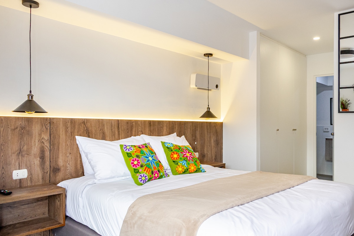 Jasny i wygodny apartament typu studio na drugim piętrze autentycznego domu kolonialnego. Idealne dla par szukających wygody i niezależności, z wszystkimi usługami wliczonymi w cenę. Położony zaledwie 8 minut spacerem od Plaza de Armas, w pobliżu atrakcji, takich jak Koricancha i Sacsayhuaman. Dzięki supermarketom, aptekom, bankomatom i targowi San Pedro w odległości kilku kroków, jest to idealny wybór, aby cieszyć się Cusco z urokiem i praktycznością.