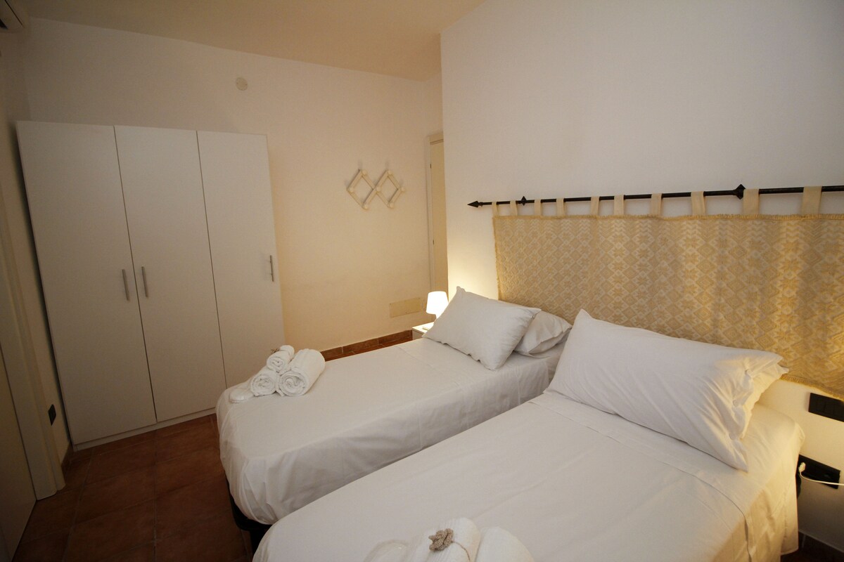 Apartament położony w historycznym centrum wioski Sant'Antioco, kilka kroków od przystani i wszystkich głównych usług, kilka kilometrów od najpiękniejszych plaż na wyspie i portu Calasetta. Mieszkanie znajduje się na parterze cichego, cichego i bardzo sugestywnego kompleksu mieszkalnego. Składa się z dużej części dziennej z kuchnią i rozkładaną sofą wyposażoną w materac ortopedyczny, sypialnię dwuosobową i łazienkę. Prywatne miejsce parkingowe w ogrodzie kondominium.