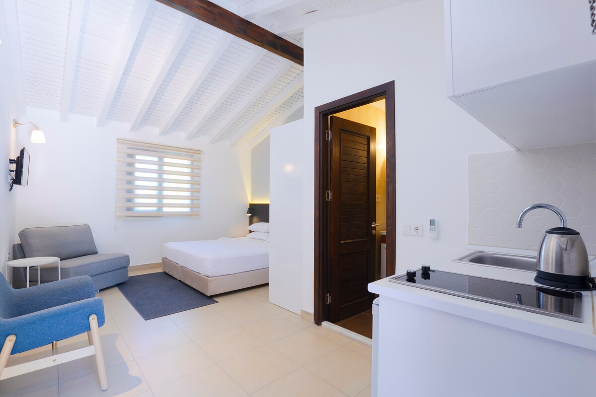 Przytulne, butikowe studio idealne na długie pobyty na wyspie; z portem, przystankiem autobusowym, plażą, restauracjami i sklepami zaledwie kilka minut spacerem! Zrelaksuj się, napełnij baterie i ciesz się idealną równowagą między wygodnym, nowoczesnym otoczeniem a prawdziwą, tradycyjną gościnnością naszego domu! Dom może pomieścić tylko dwie osoby