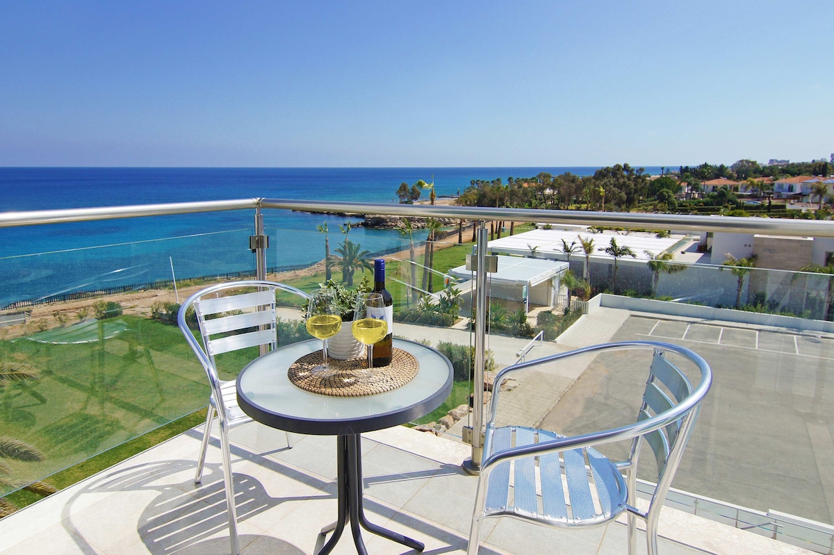 One-bedroom seafront apartment overlooking a beautiful bay, ideal for swimming and snorkelling, often visited by young sea turtles. It is part of the Coralli Spa Resort offering a large pool, a kids’ pool, and a tennis court. The area is peaceful as it is home to luxury villas and a 5-star hotel. A 10-minute walk along a seafront promenade will take you to Fig Tree Bay's award-wining golden sandy beach & water sports, and the bustling Protaras strip with numerous restaurants, bars and shops.