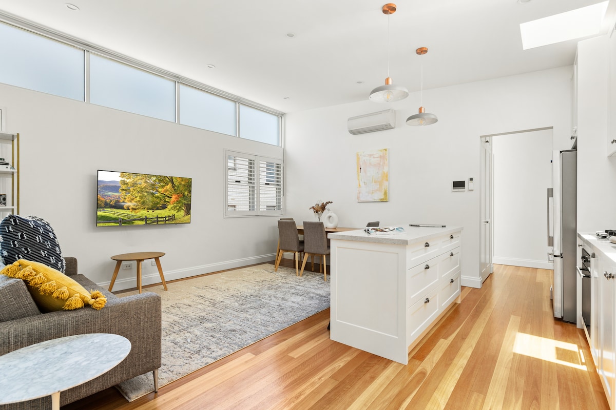 Light-filled, spacious, private, beautifully appointed guesthouse with everything you need for your stay. Huge open plan lounge, kitchen, dining. Queen bed. Cot for infants. Beautiful bathroom. Air-conditioning. Private sunny outdoor space with Weber BBQ. Access to pool. 5 mins to Airport. 10 mins to the beach. Free street parking. Suitable for 2 adults and one infant