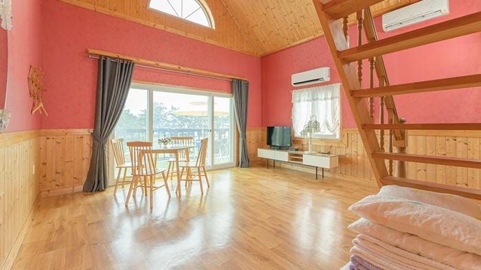 Love Bed and Breakfast – prywatny pensjonat z widokiem na zachód słońca i morze w Taean Anmyeon-do Plaża Taean Anmyeongdo, gdzie zachód słońca maluje niebo złotymi barwami, Składa się z przestronnego salonu z widokiem na morze, 4 niezależnych pokoi i 4 prywatnych toalet. Przedstawiamy wygodne miejsce idealne dla dużych rodzin i grup oraz pensjonat ze śniadaniem. W salonie z widokiem na morze, Jest tu 43-calowy telewizor, klimatyzacja stojąca, wentylator i wygodna sofa. To świetne miejsce, aby usiąść i porozmawiać o Dorando. Jest też stół jadalny dla 8 osób i stół wewnętrzny dla 4 osób. Możesz cieszyć się spokojnym posiłkiem. Każdy pokój ma oddzielną toaletę i jest klimatyzowany. Nawet jeśli wiele osób przebywa razem, możesz mieć niezależny i przyjemny wypoczynek bez żadnych niedogodności. • Przytulne łóżko typu queen w 3 pokojach • 1 pokój jest ciepłym pokojem ondol Od osób starszych po dzieci – każdy może się u Ciebie wygodnie zatrzymać. Ponadto na tyłach obiektu znajduje się również miejsce do grillowania, dzięki czemu można cieszyć się pysznym czasem podczas oglądania zachodzącego słońca.