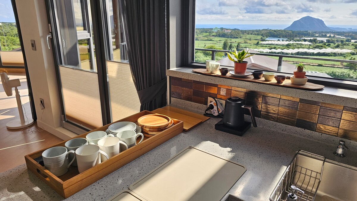 • Maksymalnie 2 osoby, w tym dorośli i dzieci (w tym niemowlęta). • Cichy pensjonat z białym wystrojem i projektem znanego architekta • Otwarty widok na morze i las cedrowy (widok na ogród może różnić się od zdjęcia). • Łóżko typu queen size (dodatkowa pościel za opłatą) • Zimą salon i sypialnia są zamieniane miejscami. • Kuchnia (bez grillowania) i jadalnia umożliwiająca proste gotowanie w pokoju • Indywidualny ogród, prysznic i toaleta • Indukcja, elektryczny kocioł (brak instalacji gazowej) • Śniadanie: proste śniadanie serwowane w kawiarni (tosty i soki) • Nie ma możliwości grillowania. • Komunikacja: 10 minut samochodem do Jungmun, 15 minut do Seogwipo, 30 minut do trasy Youngsil w górach Hallasan, 50 minut do lotniska, 4 minuty spacerem od przystanku autobusowego z lotniska