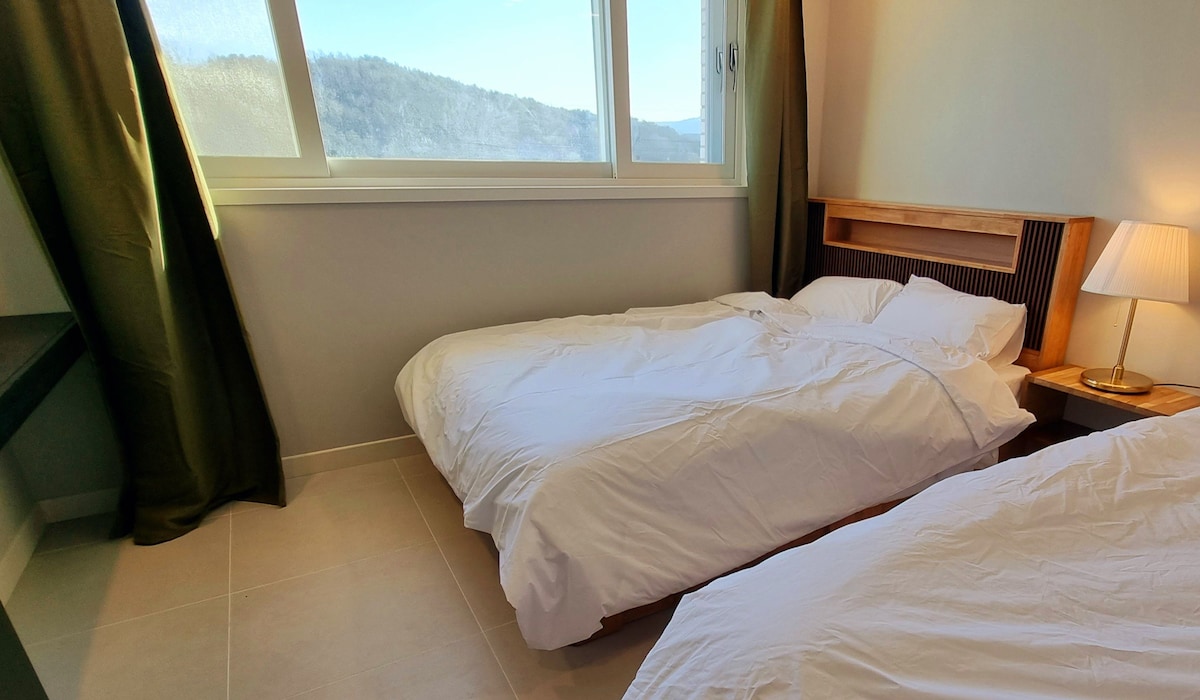 Jest to prywatne zakwaterowanie tylko dla jednej ekipy, wygodne 25 pyeong na dużej działce 200 pyeong, do której można dojechać samochodem. Jest to wejście do wioski obok szerokiej drogi, ale znajduje się około 50 metrów od prywatnego domu, więc jest to prywatne zakwaterowanie, które w ogóle nie przeszkadza w otoczeniu i hałasie. W dwóch sypialniach znajduje się łóżko typu queen-size i dwa łóżka typu super-single, więc mamy przestrzeń, w której 4 osoby mogą wygodnie odpocząć. Jeśli są dodatkowe osoby, przygotujemy pościel w salonie. Możesz oglądać filmy z Netflixa na 85-calowym telewizorze 8K. Odległość od plaży wynosi również 3 minuty jazdy od Surf Beach. Po zaparkowaniu w ogrodzie znajduje się 20 niskich i ładnych schodów. Jeśli nie czujesz się komfortowo, zapoznaj się z nim podczas rezerwacji.