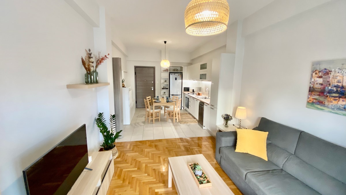 Całkowicie odnowione mieszkanie w idealnej lokalizacji do zwiedzania Aten, 3 minuty od stacji metra i blisko wszystkich obszarów o znaczeniu archeologicznym. Po drugiej stronie ulicy znajduje się przystanek tramwajowy, który może zabrać Cię prosto do przystani Flisvos i plaży Glyfada. Wszystkie urządzenia i meble są fabrycznie nowe, w tym w pełni wyposażona kuchnia, pralka i telewizor 4k. Białe ręczniki i pościel są świeżo wyprane na Twój przyjazd.