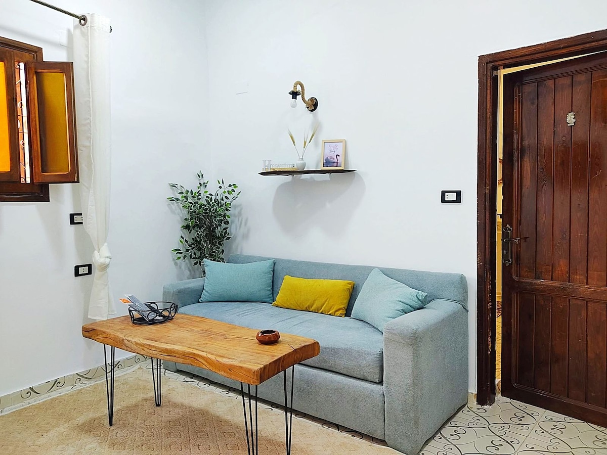 ☀️A cozy newly renovated and freshly painted two bedroom apartment in El fanar street in lighthouse area. ☀️Two bedrooms, equipped kitchen, tv, AC, fan, hot water, washing machine, and wifi. ☀️ Location: Next to the Vegan Lab Restaurant and Tota Restaurant in El fanar street in lighthouse area. ☀️ Amid all services with a quiet atmosphere.