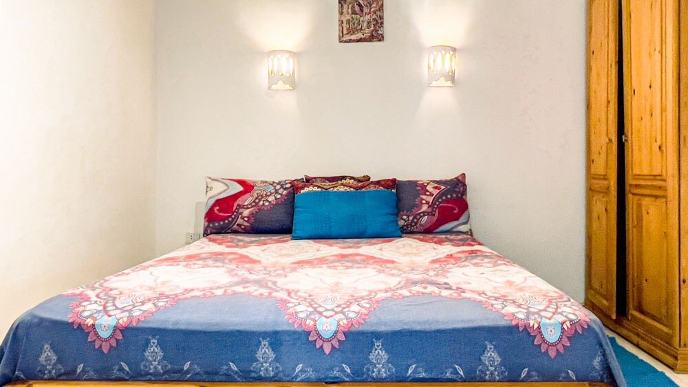 Przestronny apartament z dużym tarasem, otwartą kuchnią i zapierającym dech w piersiach widokiem na morze. Tutaj możesz spędzać większość czasu na świeżym powietrzu — relaksując się w przytulnej okolicy chila, podziwiając góry, morze i kwitnący ogród, w ciszy, bez sąsiadów i zgiełku. Zaledwie kilka kroków dalej znajdują się najlepsze restauracje w Dahab — Seduction i Shanti Café, gdzie czeka na Ciebie pyszne i nastrojowe jedzenie. Zaledwie minutę drogi dzieli Cię od najbardziej malowniczej plaży w Dahab. To jedno z najlepszych miejsc na relaks!
