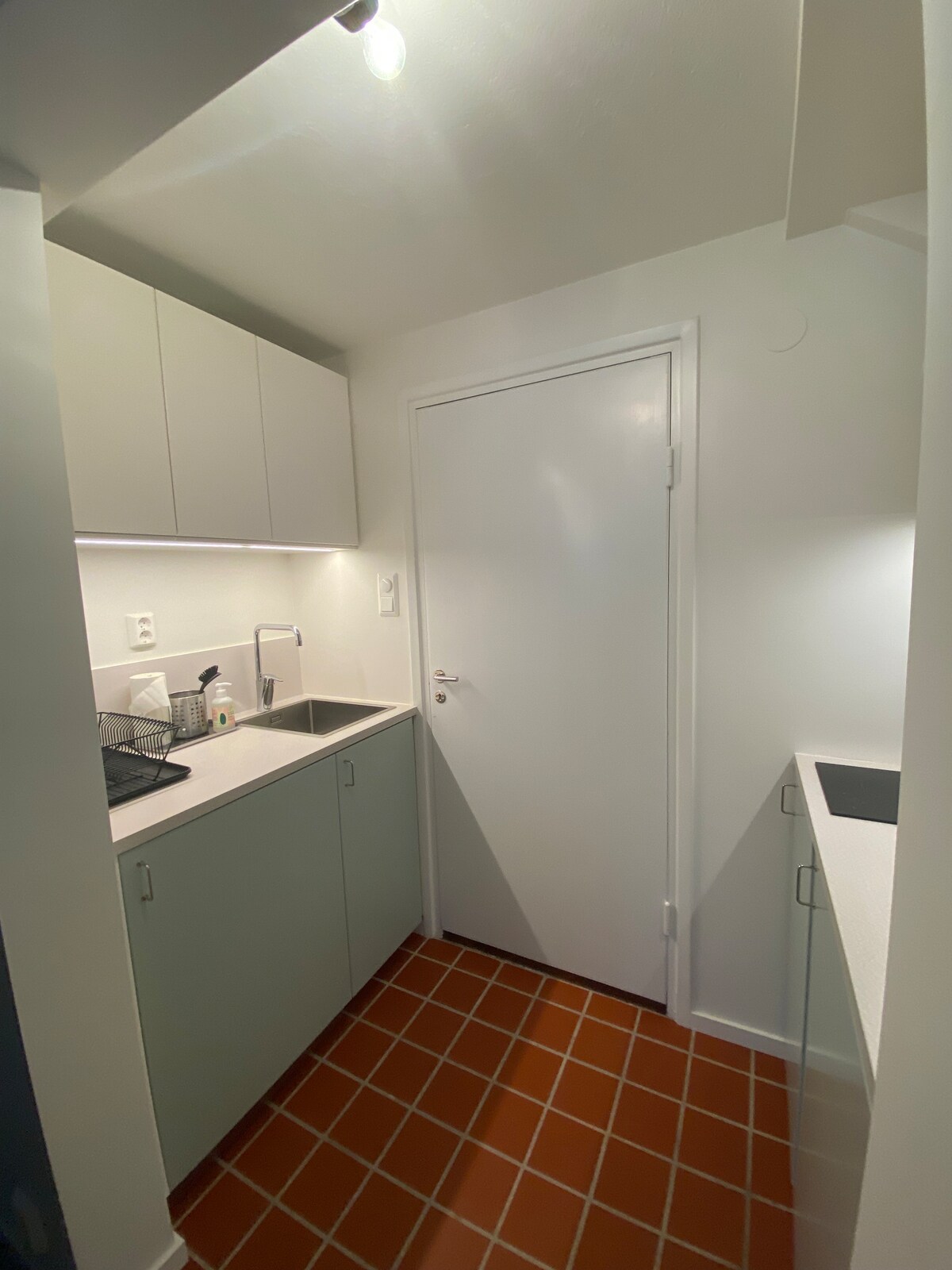 Very close to the city, all amenities, services and the metro and buses are a 5 minute walk away. Quiet, peaceful and beautiful surroundings with nice walks by the water. Newly built, modern, well equipped 30 sqm apartment with excellent sound proofing. The large room has two single beds 80cm wide, (can be put next to each other), tv, sitting area with sofa, dining area, a full kitchen, a beautiful bathroom and a laundry area with washing machine, drier and a cupboard. Towels are provided.