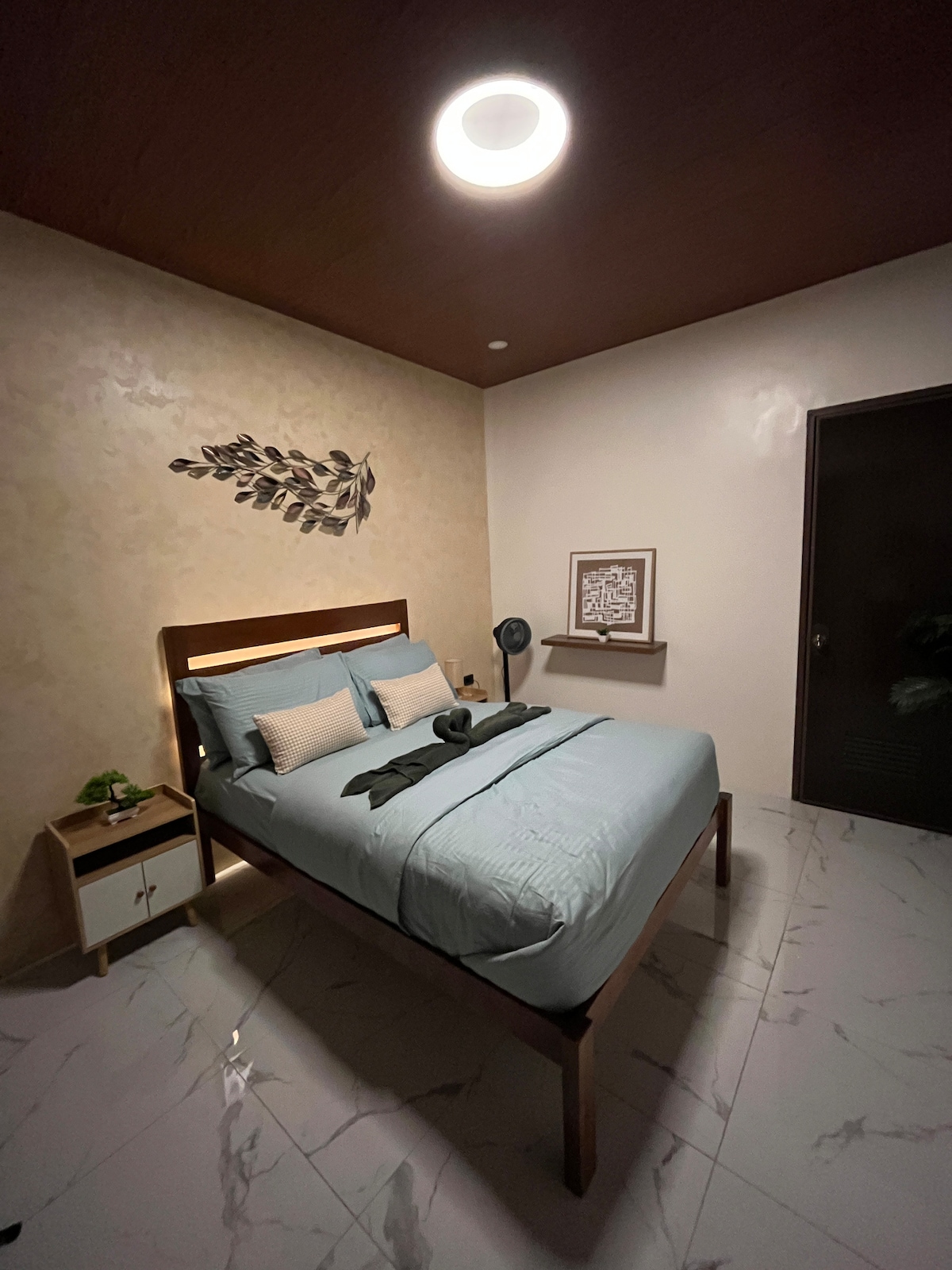 Witaj w naszym przytulnym miejscu! Zrelaksuj się w wygodnym mieszkaniu z dużym łóżkiemi 2 pojedynczymi łóżkami, idealnym dla przyjaciół lub rodziny. Ciesz się komfortem klimatyzacji i wentylatora, a także własną łazienką z gorącym prysznicem. Pozostań w kontakcie dzięki szybkiemu Wi-Fi Starlink, idealnemu do pracy lub streamingu. Poczuj się jak w domu w naszej przestrzeni wspólnej, z w pełni wyposażoną kuchnią i wydzielonym miejscem do pracy. Położone wygodnie między C9 a centrum miasta, z łatwym dostępem do pobliskich atrakcji.