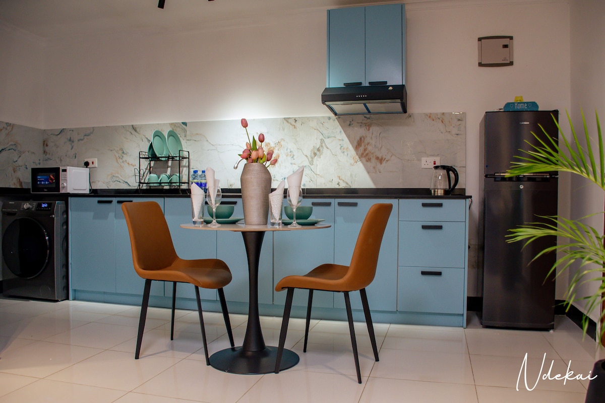 Jest to apartament z 1 sypialnią z oddzielną otwartą kuchnią i salonem, który oferuje bardzo potrzebną prywatność, szczególnie dla par. Lokal znajduje się w bezpiecznej okolicy, w zasięgu wielu ważnych miejsc w Dar, takich jak Mlimani City, centrum miasta i Masaki. Jednostka jest dobrze wyposażone w nowoczesne udogodnienia, w tym pralkę, niezawodne Wi-Fi, telewizję kablową 55-calową, klimatyzację i wiele innych. Na zewnątrz znajduje się bezpieczny parking za darmo, a także ładny ogród do relaksu.