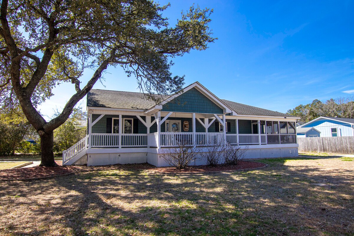 Ten przestronny dom z 5 sypialniami i 4 1/2 łazienkami znajduje się zaledwie przecznicę od plaży z widokiem na ocean! Ten dom może pomieścić wiele rodzin z łazienkami w 3 sypialniach, pokojem z łóżkami piętrowymi oraz dodatkowym salonem i aneksem kuchennym. Witamy w idealnym miejscu na wypoczynek w Outer Banks, z krótkim spacerem do dwóch plaż, prysznicem na zewnątrz, dużą przestrzenią na tarasie, aby oglądać wschód słońca lub po prostu zwinąć się z dobrą książką, oraz prywatną wanną z hydromasażem, aby zrelaksować się po dniu spędzonym na słońcu.