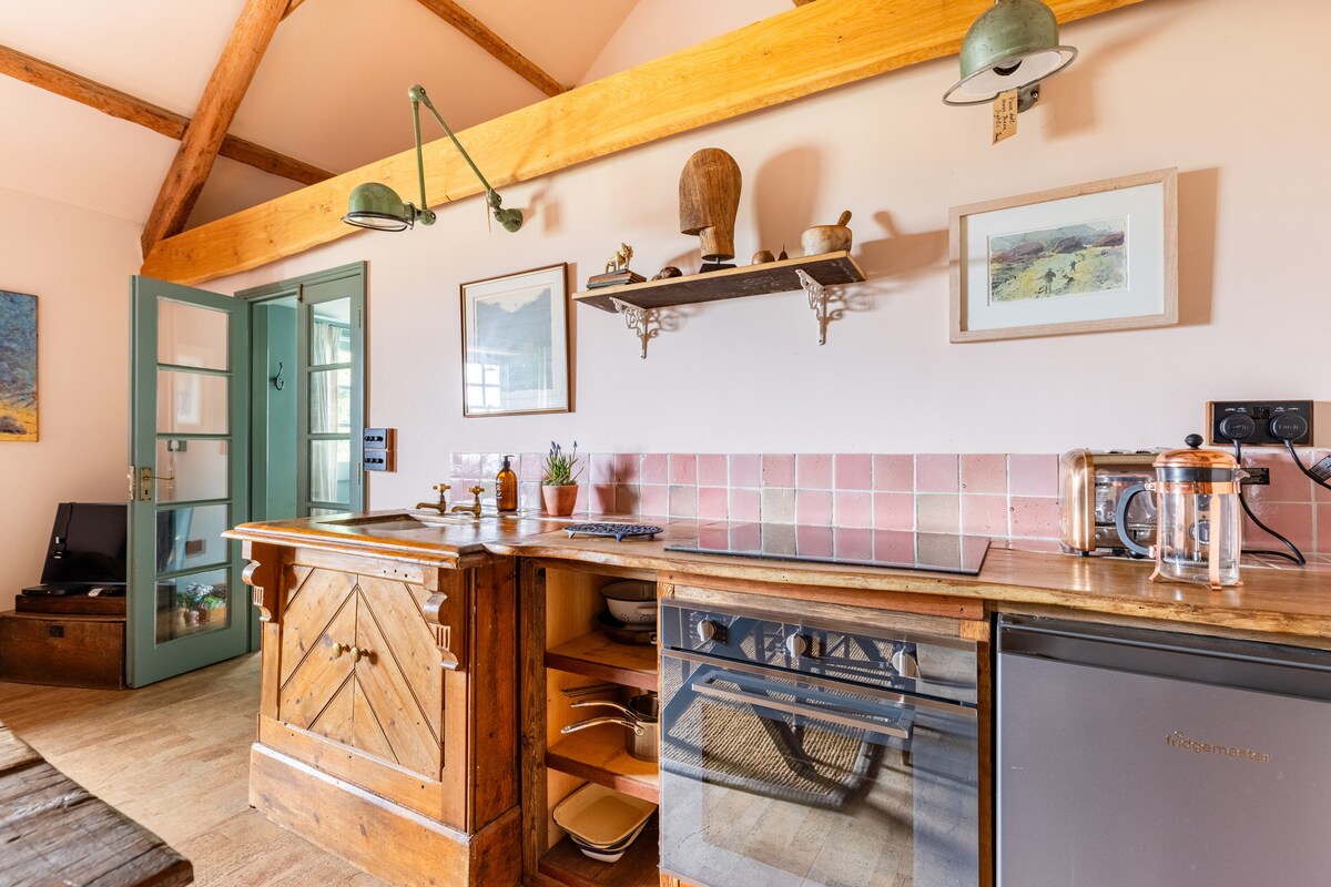 Spokojna, luksusowa przestrzeń do regeneracji i nawiązania kontaktu. Shippon to starannie przekształcona stodoła dla krów z ogrzewanymi, wypolerowanymi betonowymi podłogami, delikatnie zakrzywionymi ciemnozielonymi ścianami, ręcznie zbudowaną kuchnią, ciepło oświetlonymi kącikami do czytania i naturalnymi materiałami. Wełniane koce, puchowa sofa, zabytkowy skandynawski piec na drewno, łóżko typu king-size z francuską pościelą i kołdrą, prysznic z wodospadem i najdelikatniejsze ręczniki. Nasza senna wioska Devon jest oświetlona tylko przez gwiazdy w nocy. Możesz po prostu spać lepiej niż od lat.