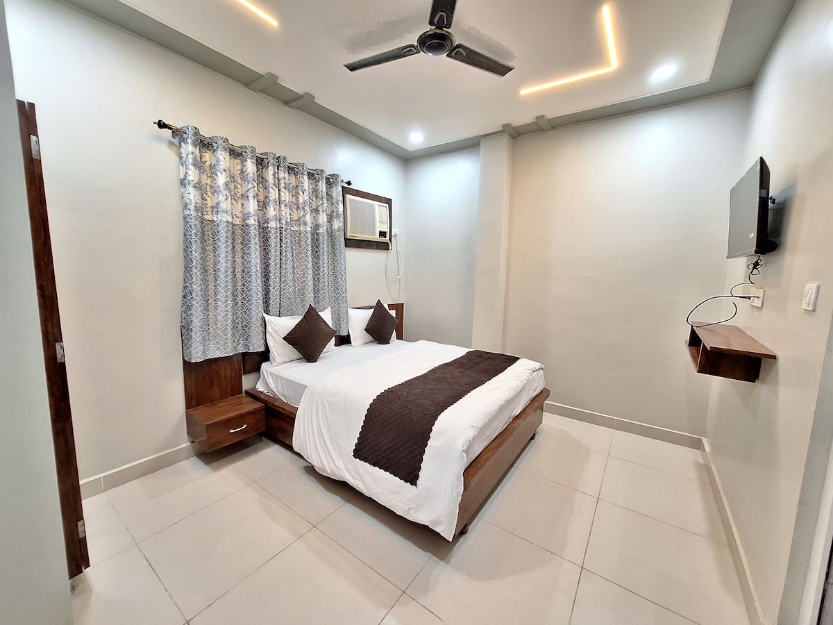 Luksusowy pokój w pobliżu świątyni Kashi Vishwanath | Pobyt w luksusowym stylu i zabytkowym stylu Zaprojektowany z nowoczesnym wystrojem i wyposażony w najwyższej jakości udogodnienia, pokój wyposażony jest w klimatyzację, miękką pościel i dobrze wyposażoną łazienkę. Goście mogą cieszyć się tętniącą życiem energią ulic świątynnych.Nasza przestrzeń, idealna dla pielgrzymów, par i podróżników poszukujących zarówno wygody, jak i klasy, zapewnia spokój i odprężenie zaledwie kilka kroków od boskości.Zarezerwuj już dziś i poznaj duszę Varanasi, otuloną komfortem, luksusem i tradycją.