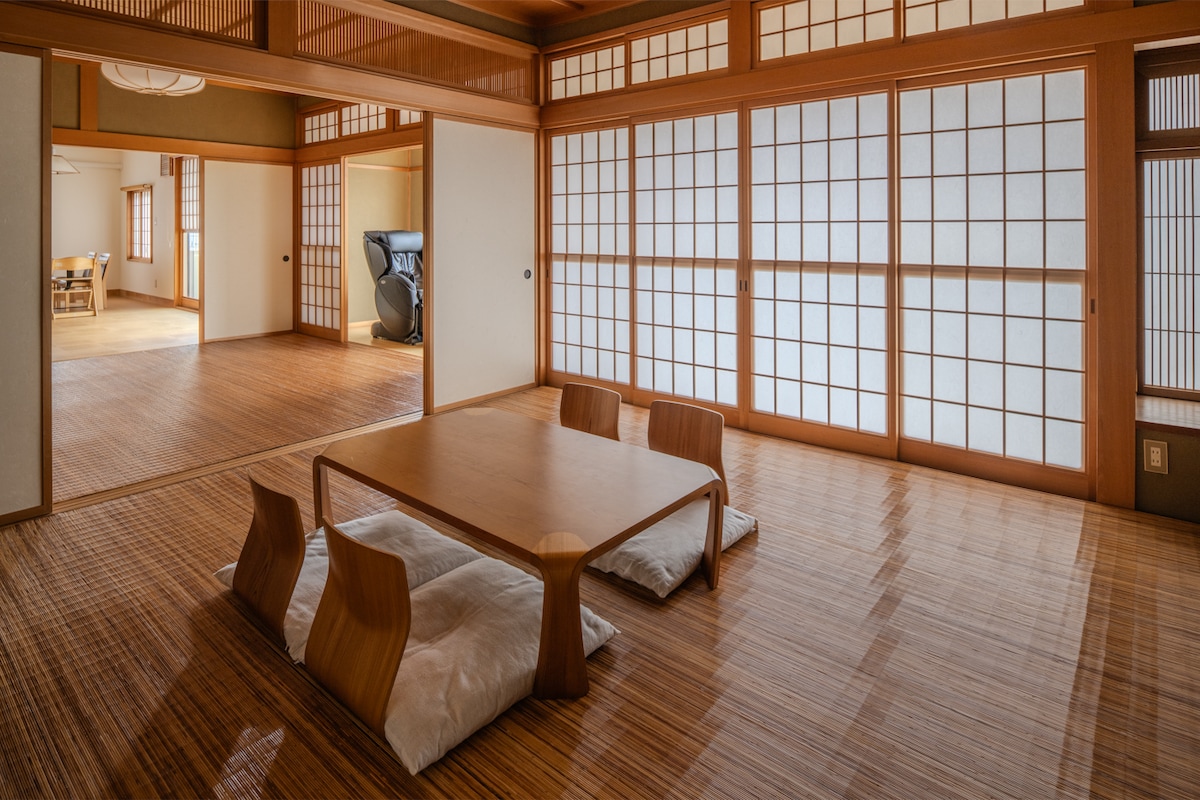 Obiekt noclegowy w jednym budynku Są tu wanny z hydromasażem i wanny częściowo na świeżym powietrzu, w których można korzystać z gorących źródeł do woli, a na drewnianym tarasie z dachem można wypić kawę powitalną. W wannie z hydromasażem możesz korzystać z gorących źródeł, podmuchów powietrza i strumieni. Z kąpieli na świeżym powietrzu może korzystać rodzina (5-6 osób). Wszystkie pokoje wyposażone są w centralne ogrzewanie i grzejniki naftowe typu FF (salon na pierwszym piętrze, oddzielny), dzięki czemu w pomieszczeniach jest ciepło i komfortowo nawet zimą.