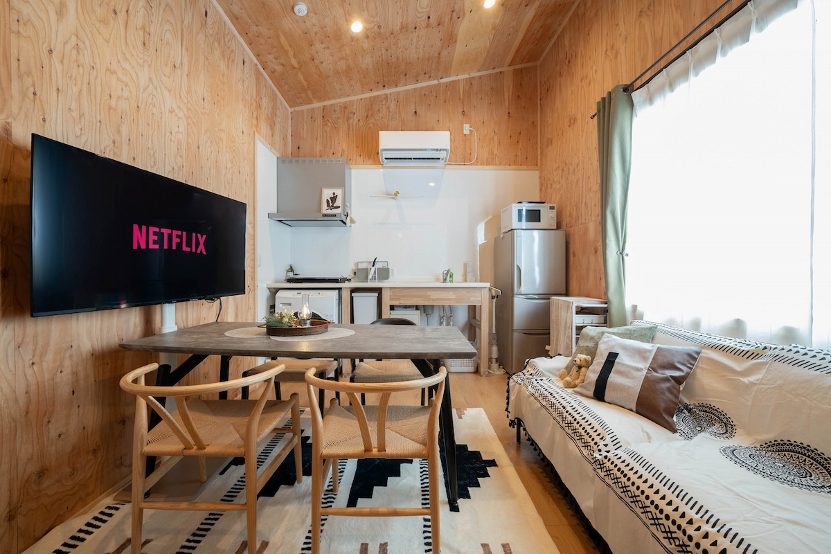 Toya Private Inn Kazu, położony zaledwie 5 minut spacerem od stacji JR Toya Private Inn Kazu to tradycyjny japoński dom zbudowany w całości z drewna - bez użycia stali przez wykwalifikowanych rzemieślników, wykorzystujący rzadkie drewno Aomori Hiba w Hokkaido. Dom oferuje ciepłą, autentyczną atmosferę z zapachem drewna i pięknym widokiem na ogród z salonu i pokoju tatami. Idealny dla rodzin lub przyjaciół, zapewnia spokojny, prywatny pobyt w pobliżu gorących źródeł, narciarstwa, plaż i zwiedzania jeziora Toya.