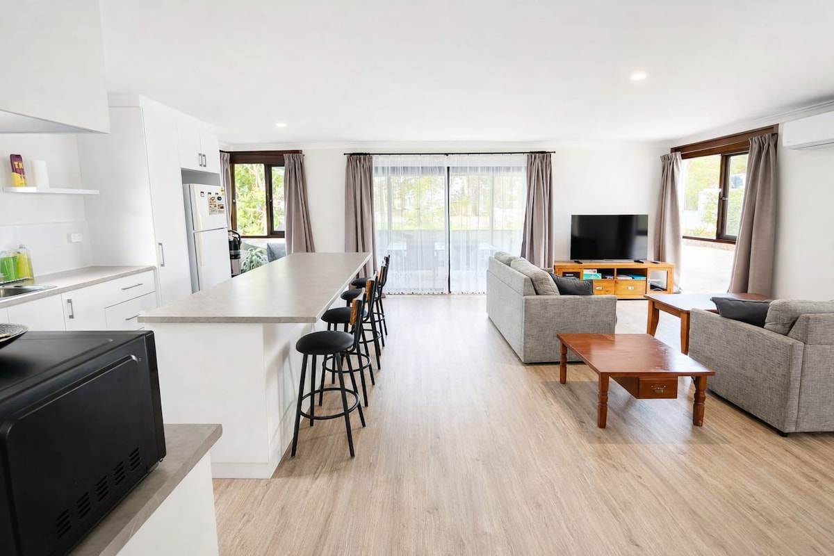 Zrób sobie przerwę i zrelaksuj się w tej spokojnej oazie wodnej. Zapewniamy bezpłatne kajaki i sieci krabowe do bezpłatnego użytku naszych gości. Weź ze sobą własne wędki dla Bream, Tailor & Herring. Jest też molo do cumowania łodzi lub możesz po prostu zrelaksować się z ptakami i delfinami, obserwując, jak dzień mija się w Twojej własnej kryjówce na tym ogromnym kanale wodnym. Dostępny telewizor z Androidem z darmowymi aplikacjami: Netflix, Prime, Stan i Disney+ dla tych, którzy chcą zostać i obejrzeć film wieczorny