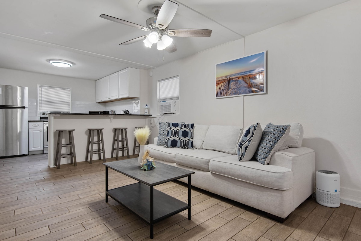 Ciesz się pobytem na Florydzie w stylowym, nowo odnowionym i położonym w centrum pensjonacie! Domek gościnny jest całkowicie oddzielony od głównego domu – podczas pobytu będziesz mieć całą jednostkę. Blaty kwarcowe, pralka/suszarka, łóżko typu queen i rozkładana kanapa z dodatkową pościelą. Wygodnie mieszczą się 4 osoby! 9 minut do plaży, 15 minut do Daytona International Speedway, lotniska i Tanger Outlets. 5 minut do Riviera Golf Course. Sklep spożywczy (Publix) i park nad rzeką/ogrodzony plac zabaw w pobliżu.