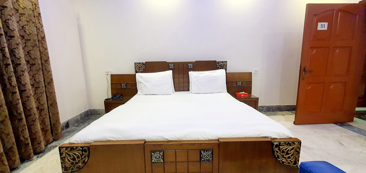 This comfortable double-bed room is ideal for 2-3 guests, offering all the essentials for a relaxing stay. Room Features: Double bed with space for 2-3 guests Convertible table and workspace Hotel Amenities: 24/7 access to the gym Room service Secure Parking Nearby food spots, marts, and hospitals Breakfast & extra mattresses (additional charge) House Rules: No smoking No unmarried couples No alcohol Enjoy your stay in the heart of the city with everything you need just steps away!