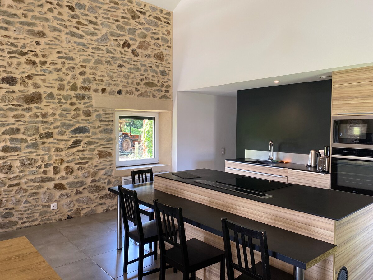 W zielonym otoczeniu, oddychaj świeżym powietrzem na łonie przyrody Tarn. W sercu doliny Sidobre między Montagne Noire i Monts de Lacaune odkryj tę oazę spokoju. Położony 45 minut od biskupiego miasta Albi i 35 minut od Castres, będziesz w pobliżu wioski ze wszystkimi udogodnieniami (sklepy, centrum rekreacyjne ...) Stodoła posiada duży salon z kuchnią, rozkładaną sofą i dużym kącikiem jadalnym.