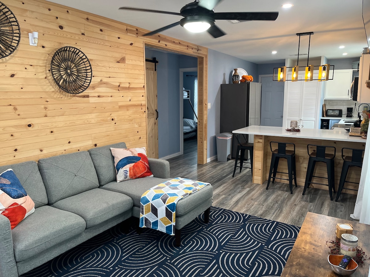🌵 Ucieknij do Tejas Loft na historycznej Main Street Ten loft inspirowany Tejas Country Club łączy jasne kolory, odważne dzieła sztuki i tętniącą życiem lokalną atmosferę na Twój wypoczynek w Denison. ✨ Odważny wystrój + jasne akcenty 🛏️ Duże łóżko (king) + średnia rozkładana sofa (dla 4 osób) 📺 Telewizory Smart TV w sypialni i salonie 📶Szybkie Wi-Fi + dedykowane miejsce do pracy 🍷 Spacer do restauracji, browarów, kawiarni, sklepów i innych miejsc!