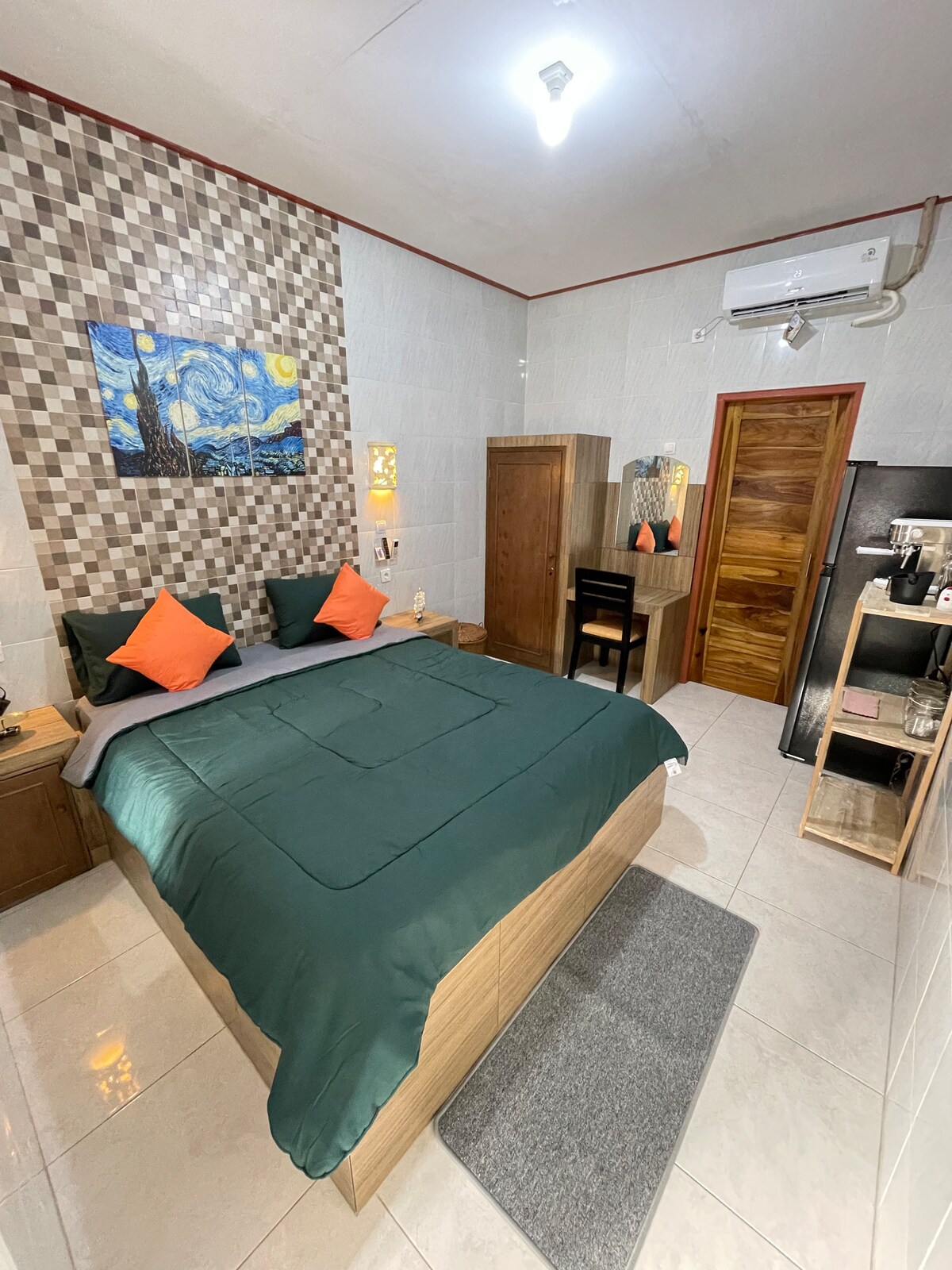 Witamy w naszym spokojnym i centralnie położonym apartamencie typu studio na pięknym Bali! Położony w spokojnej okolicy, a jednocześnie dogodnie blisko supermarketów i innych sklepów, zapewniając, że wszystkie Twoje potrzeby są w zasięgu ręki. Krótka przejażdżka zabierze Cię na wspaniałe plaże, takie jak Kuta, Seminyak czy Canggu, gdzie możesz wygrzewać się w słońcu i surfować. Apartament wyposażony jest w wygodne łóżko typu queen-size. W pełni wyposażony prywatny aneks kuchenny pozwala przygotować własne posiłki, kiedy tylko zechcesz.