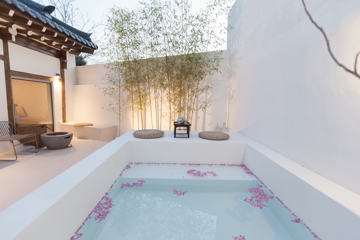 Homeo – Nowy oddech starego domu 90-letni dom w Jeongsan odrodził się dzięki nowoczesnemu podejściu. Pobyt w „Homeo” leczy serce. Cicha uliczka w Weridan-gil, Jeonju, Dom Jeongsan, który opowiada historię epoki Teraz jest to tylko jedno kompletne schronienie. Salon i jadalnia Minimalistyczna struktura z połączeniem stylu gojae, europejskiego i szklanego Prywatny podgrzewany basen i podwórko Wanna z hydromasażem na tradycyjnym dziedzińcu hanok Uzdrawianie w słońcu przez cztery pory roku Sypialnia Dwupiętrowa konstrukcja z drewnianą konstrukcją sufitu 2 oddzielne sypialnie i nowoczesna część sypialna Nowa odsłona 90-letniego domu Jeongsan Przyjazne dla zwierząt (na podstawie 1 małego psa) Prywatny basen z ogrzewaną wodą / jacuzzi / ogród, samodzielne zameldowanie, bez obsługi W pełni wyposażony w duży telewizor, audio Bluetooth, ekspres Nespresso itp. Dla podróżnych ze zwierzętami Homéo Cheers dla zwierząt. Ciche dziedzińce, antypoślizgowe podłogi i prywatna konstrukcja. To miejsce jest idealne na wyjątkową podróż.