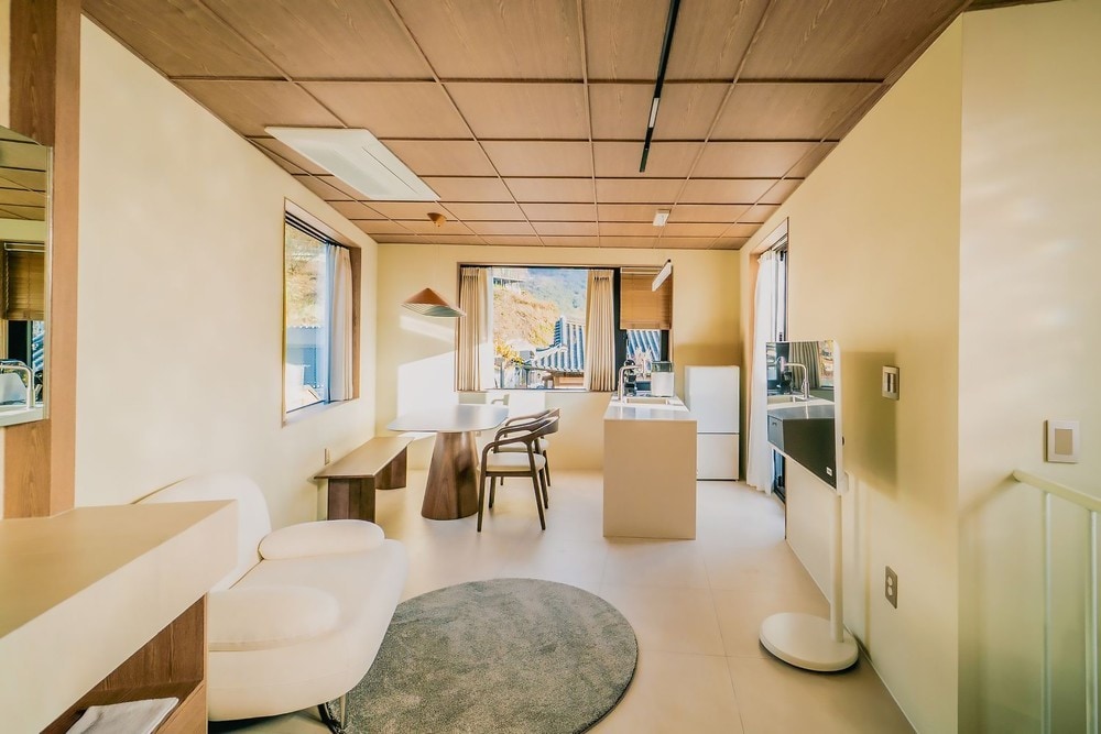 Stay Meomoom to prywatne miejsce na pobyt w wiosce hanoków w Jeonju, zaprojektowane z myślą o relaksującym i niezapomnianym pobycie. Pokój 2 to prywatne pomieszczenie na drugim piętrze z dużym oknem, jacuzzi wewnątrz pomieszczenia i prywatnym tarasem. W środku czeka na Ciebie spokojna i przytulna atmosfera, a na zewnątrz – ciepły taras z piankami marshmallow i ciasteczkami. Idealne miejsce dla par, przyjaciół lub małych rodzin, ze świeżą pościelą, zdezynfekowaną zastawą stołową i prezentem powitalnym w postaci wina musującego oraz mini ciasteczek czekoladowych Jeonju.