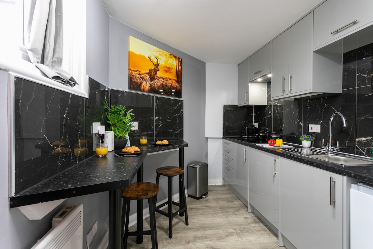 Odpocznij i zrelaksuj się w tej stylowej przestrzeni położonej w samym sercu Leicester. Ten przestronny, luksusowy apartament jest dobrze wyposażony i może pomieścić maksymalnie 4 osoby. W salonie znajduje się 55-calowy telewizor Smart TV z Netflix, YouTube itp. Dostępne jest również Wi-Fi. Jest tam rozkładana sofa z drugim kompletem pościeli, która zamienia się w pełne podwójne łóżko. Jest tu duża, luksusowa łazienka z przyborami toaletowymi. Nowoczesna kuchnia jest w pełni wyposażona w nowoczesne urządzenia.