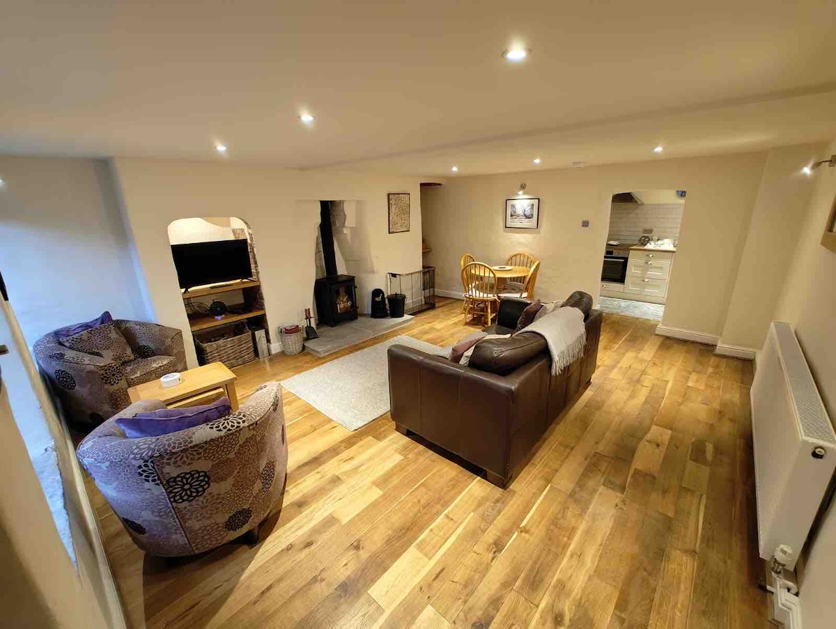 A self-contained annexe, with its own kitchen and bathroom plus a separate bedroom on an open-plan mezzanine floor above, accessible via a spiral staircase. There is free parking on the drive for one car. Please be aware that the stairs can prove challenging to older visitors or those with disabilities, and they also make the annexe unsuitable for infants.