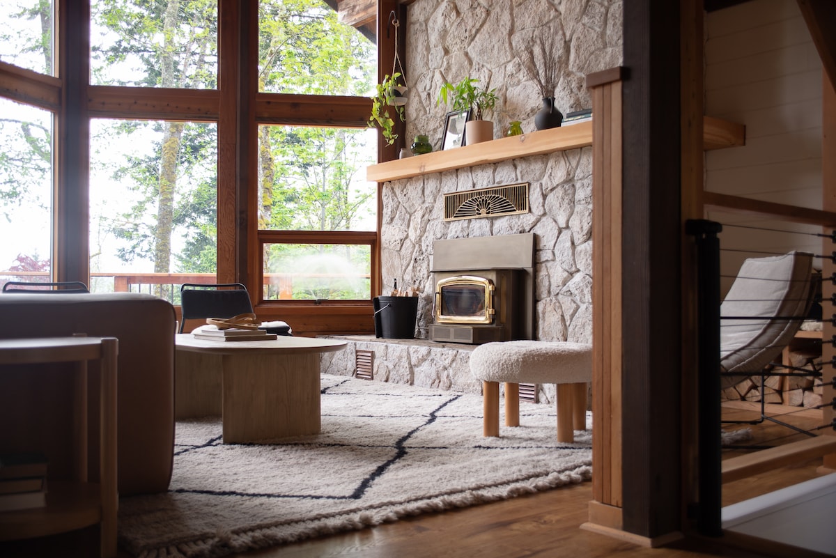 Kick back & relax to the sounds of the river, in this serene, stylish space, only 28 miles from PDX. Take in the beauty of the river & fresh air on the deck, hike, or walk across the street for wine tasting. Stay in & relax by your bonfire or head out for a night in town. Bring your friends, your family, and Fido too. Enjoy the upstairs game room/bar area, with a bar, air hockey, video games and more! Rest, relax rejuvenate, you deserve it! Add us to your wishlist now, so you can find us later!