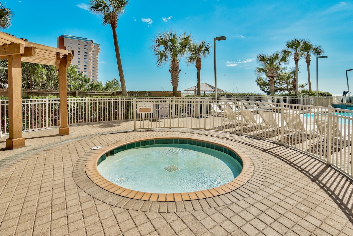 Nowo odnowione mieszkanie z 1 sypialnią i 2 łazienkami z wbudowanymi łóżkami piętrowymi. Położony na plaży na 19 piętrze z zapierającym dech w piersiach panoramicznym widokiem na szmaragdowe wody i dziewicze białe piaszczyste plaże Zatoki Meksykańskiej. W pełni zaopatrzona kuchnia z nowymi granitowymi blatami i urządzeniami łupkowymi. Niezawodny, szybki internet. Udogodnienia w ośrodku obejmują duży basen i wannę z hydromasażem, bar tiki przy plaży serwujący mrożone napoje i piwo. Wspaniała kawiarnia, która serwuje gorące śniadanie, pizzę, kanapki i sałatki.