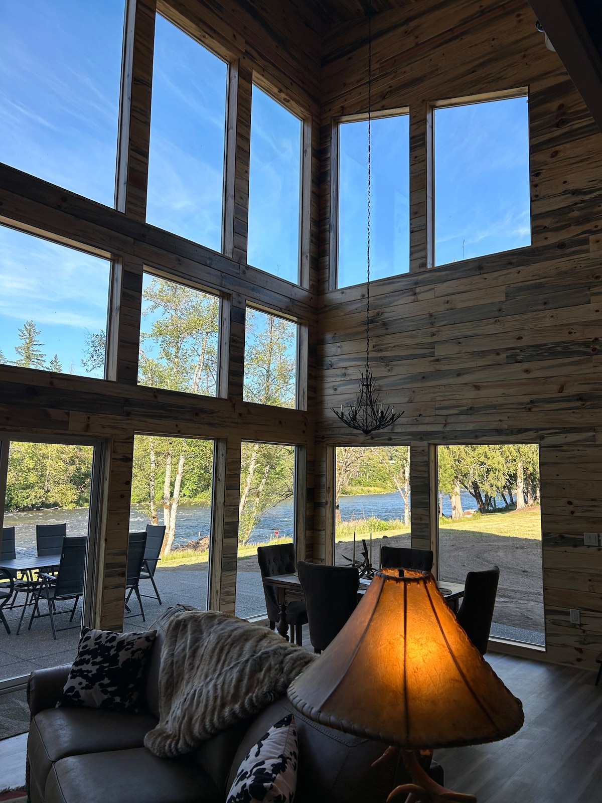 Welcome to our stunning two-bedroom, two-bath arched cabin nestled along the Sandy River. Enjoy direct access to the river, where you can bask in the natural beauty of the surroundings and a view of Mt. Hood. The open concept living area boasts large windows that frame the breathtaking river views, creating an inviting ambiance that's perfect for relaxing. Indulge in a the barrel sauna with panoramic river vista. The cabin is close to endless activities up and around Mt. Hood.