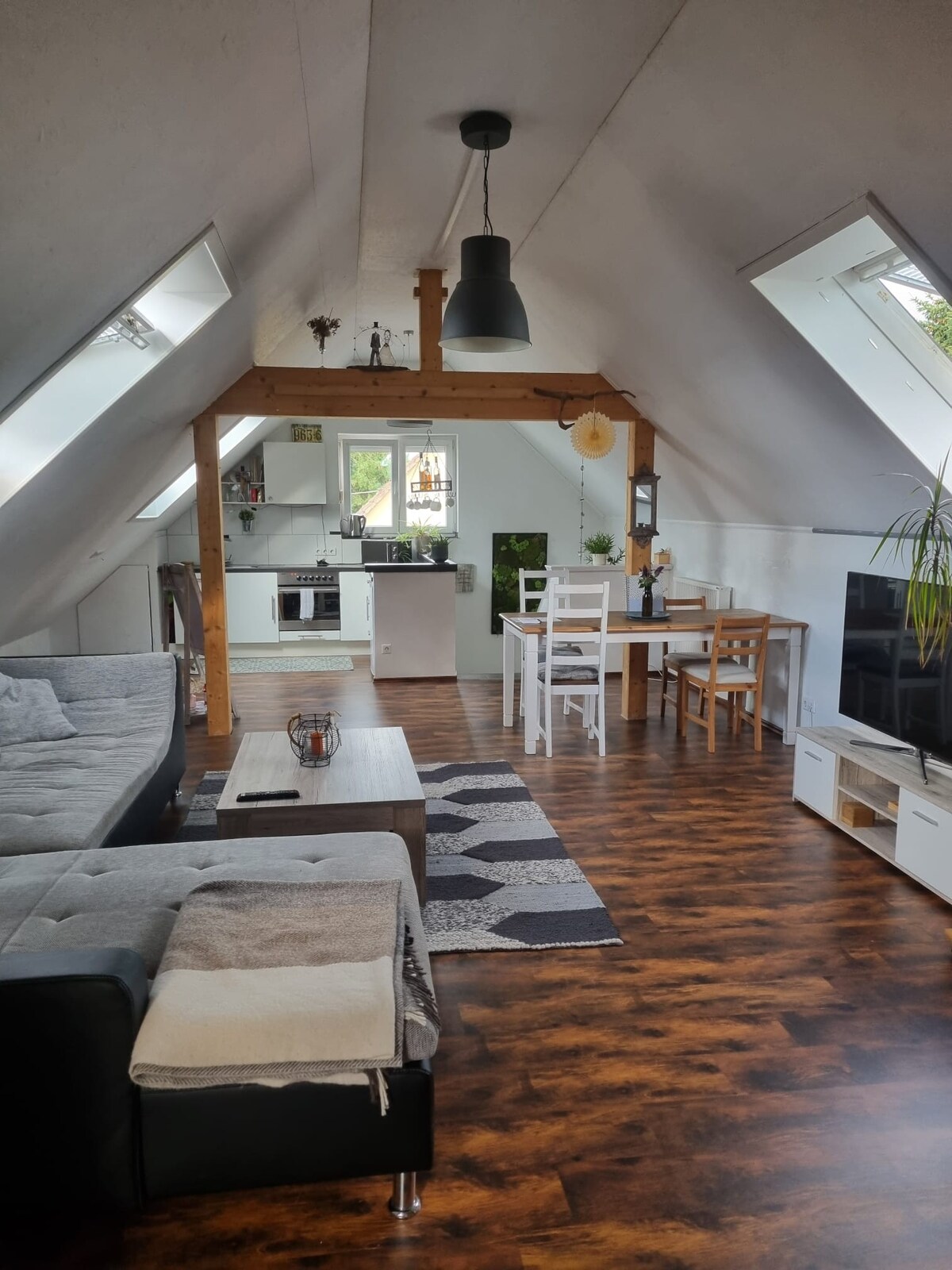 „Zwłaszcza teraz po prostu wyjedź z miasta na wieś”. Apartament znajduje się na najwyższym piętrze całkowicie odnowionego domu z 1745 roku. Nowoczesne meble, jasne pokoje, otwarty układ i 92 metry kwadratowe przestrzeni. Mieści 1-6 osób. Możesz wygodnie zrelaksować się na małym balkonie. Wejście przez oddzielne schody. Z niecierpliwością czekamy na gości, którzy chcą odkryć nasz piękny region Kraichgau lub wykorzystać go jako przystanek w podróży.