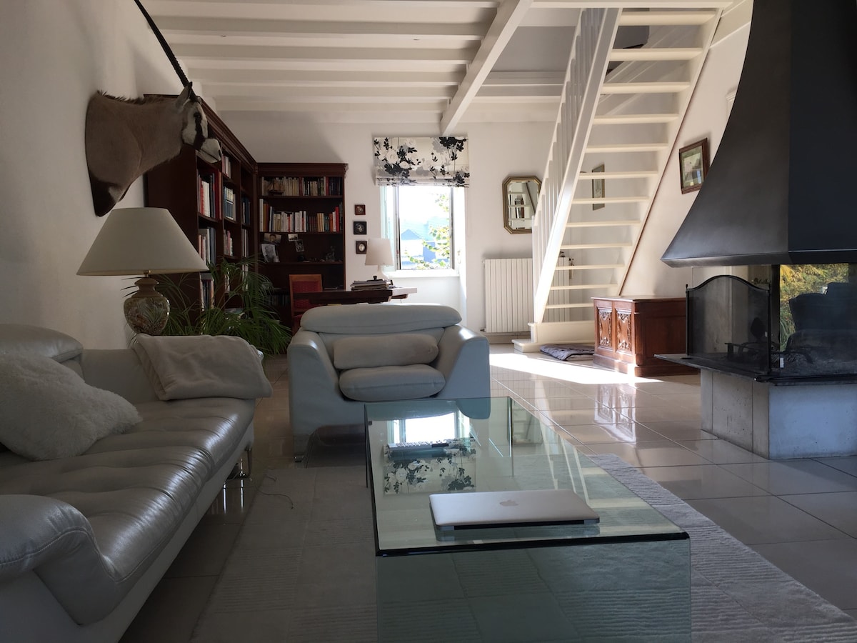 Bardzo piękny dom położony na dużej działce 20 arów na skraju lasu na wysokości wsi z oszałamiającymi i spokojnymi widokami. W tym miejscu na pobyt znajduje się duży salon z w pełni wyposażoną otwartą kuchnią, 3 sypialnie (2 łóżka pojedyncze, duże łóżko podwójne i duże łóżko typu king size). Dostępne są 2 łóżeczka dziecięce. Dom otwiera się na duży taras z zadaszoną częścią, która służy jako jadalnia. Posiada również garaż ze stacją ładowania samochodów.