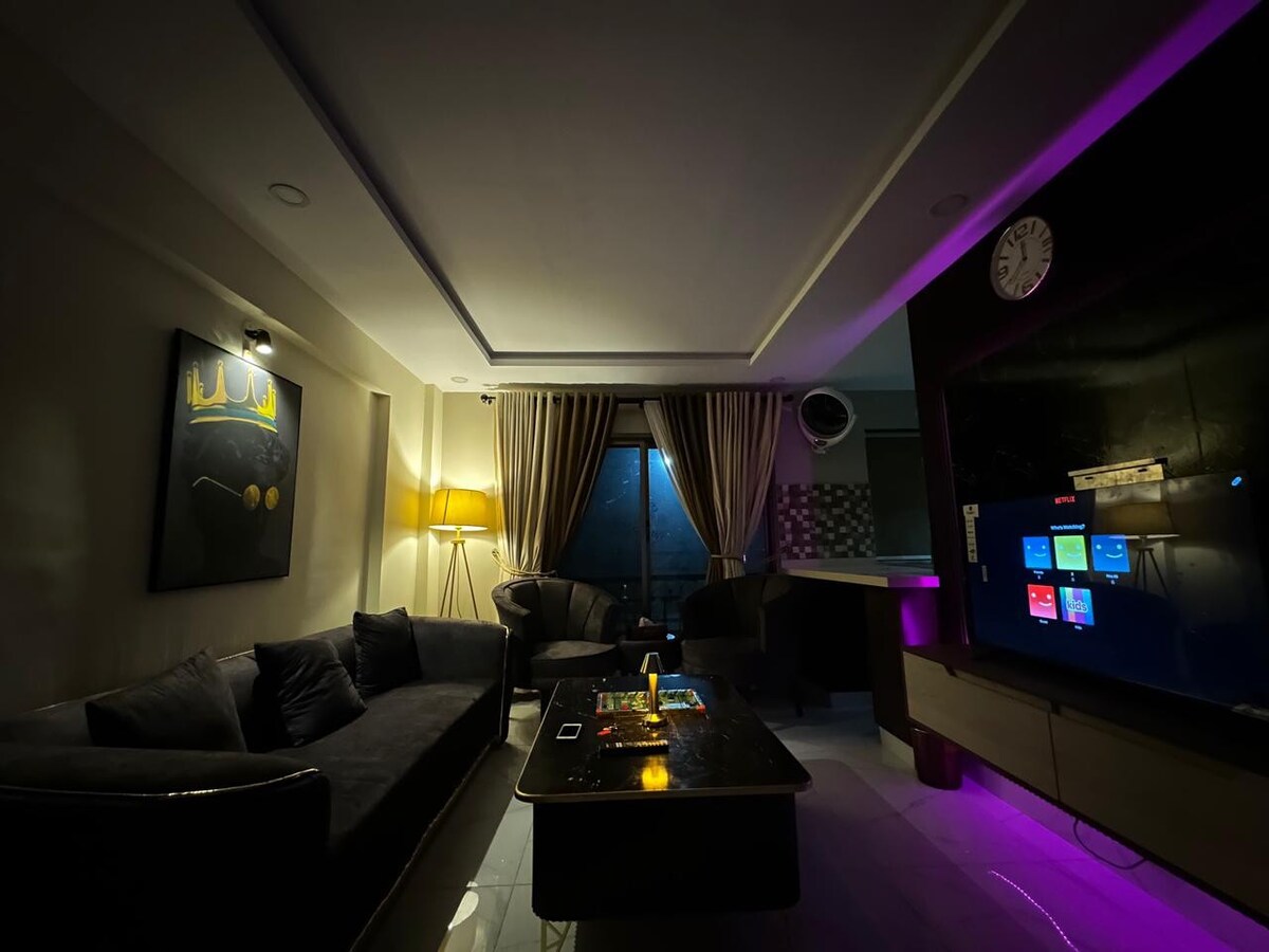 Zenith offers, 2 x designerskie sypialnie 1 x Loża 2 x tarasy widokowe 2 x łazienki 1 x funkcjonalna kuchnia A working lift, All rooms with ACs including lounge, A brand new fridge & a freezer compartment Pure Aqua Green water & a dispenser Wszystkie urządzenia kuchenne, takie jak czajnik, kuchenka mikrofalowa, sokowirówka, toster, frytkownica beztłuszczowa, sztućce, ekspres do kawy i kuchenka elektryczna. 4K Samsung LED, system UPS, system kina domowego, nawilżacz powietrza, odkurzacz, płyta grzewcza, wszystkie środki czyszczące, środki do kąpieli.